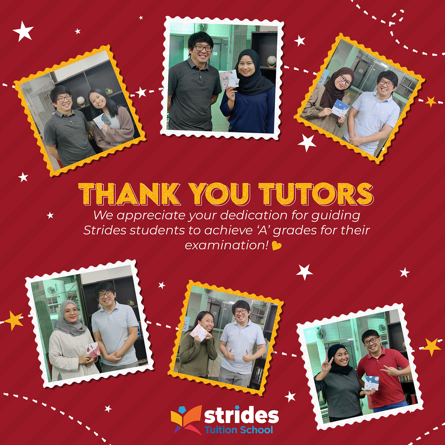 Strides' tutors are highly qualified tutors. They've aced the high school curriculum their students are now facing. Strides have undergone a rigorous selection process to ensure that the team is well-qualified for the role and tutors are licensed by the Ministry of Education (MOE).For all interested applicants: Does the above sound like you? Click here to join the team!