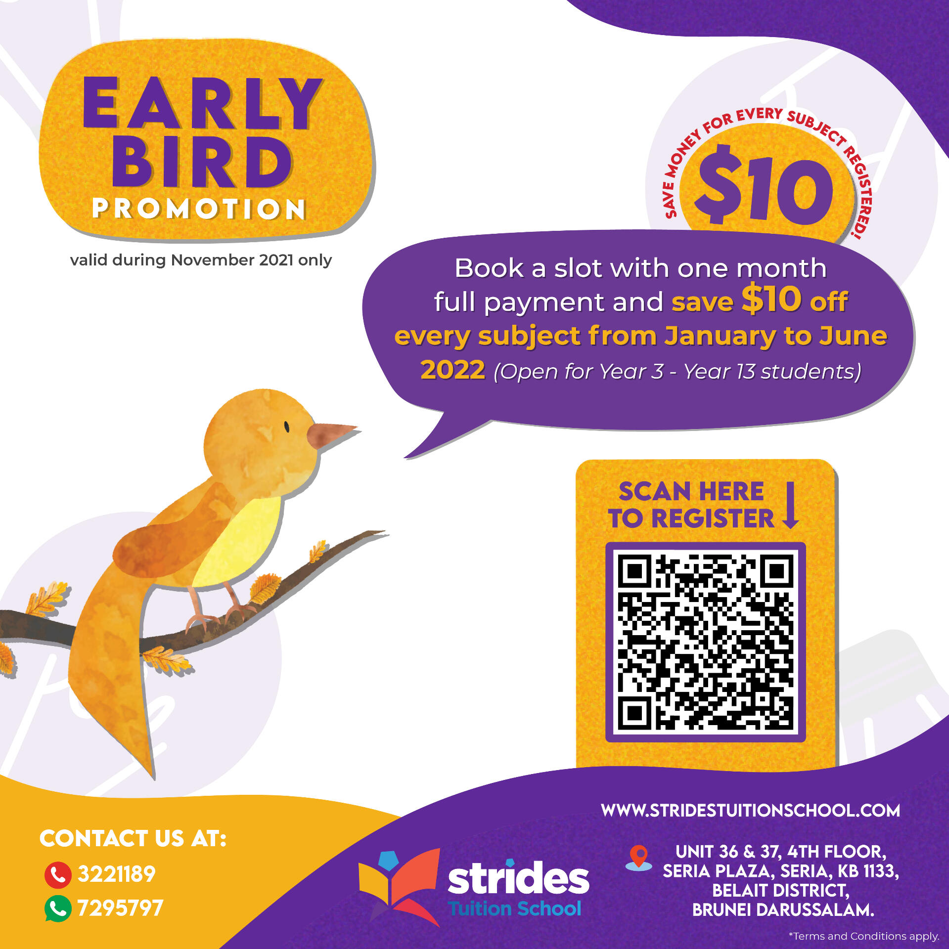 📢 In conjunction with His Majesty’s birthday on the 15th of July 2022 (Friday), Strides Tuition School will be closed on Friday and classes will resume on 18th July 2022 (Monday). Affected classes will be replaced accordingly. Thank you!