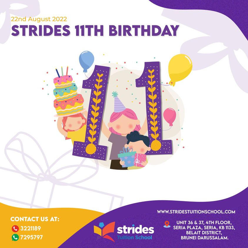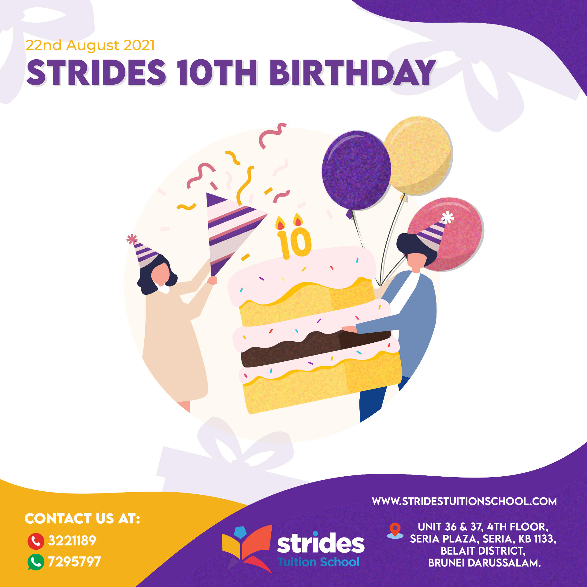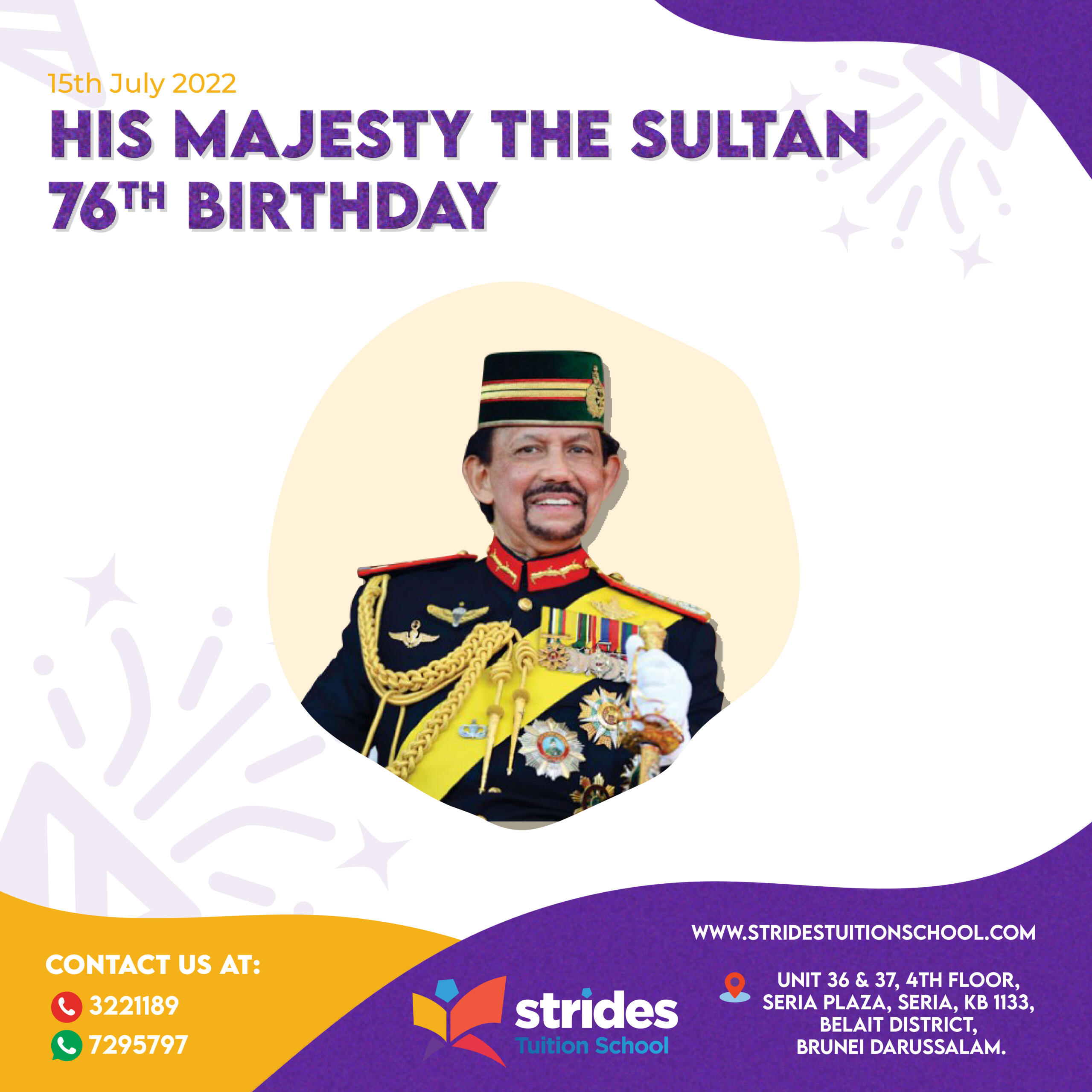 📢 In conjunction with His Majesty’s birthday on the 15th of July 2022 (Friday), Strides Tuition School will be closed on Friday and classes will resume on 18th July 2022 (Monday). Affected classes will be replaced accordingly. Thank you!