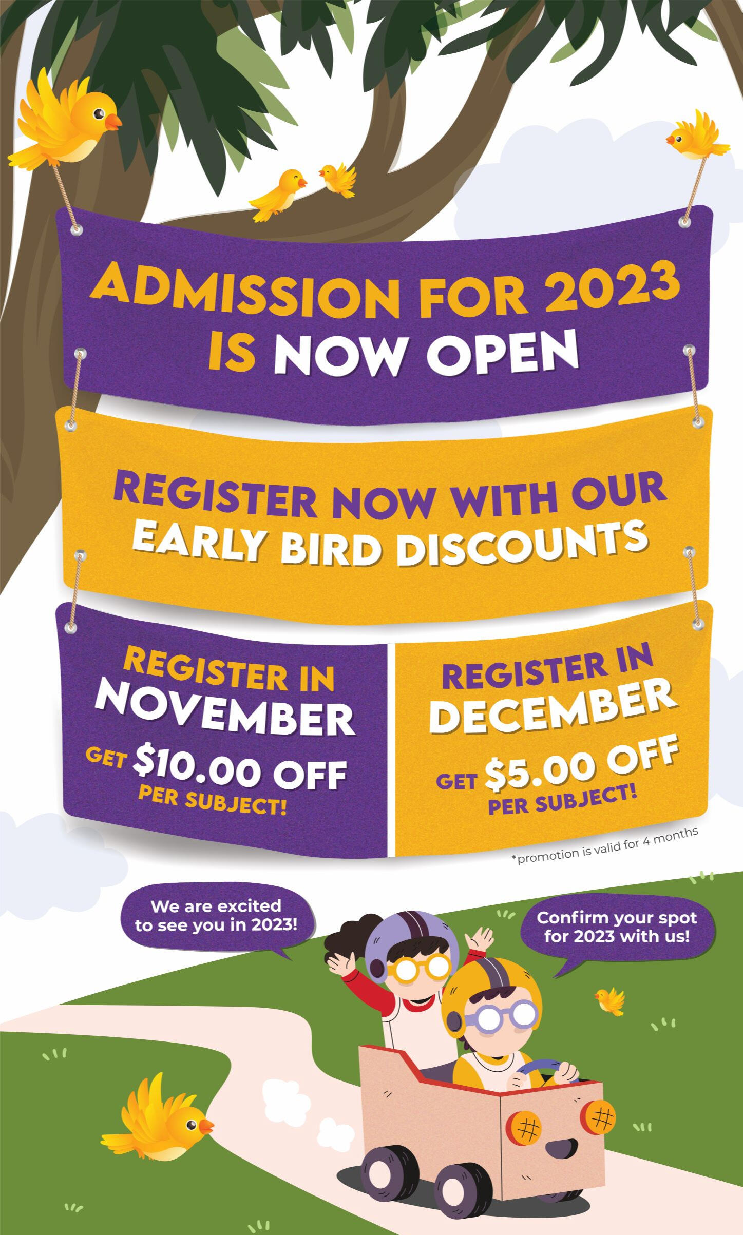 The early bird catches a discount. Confirm your spot now for 2023 enrollment!
