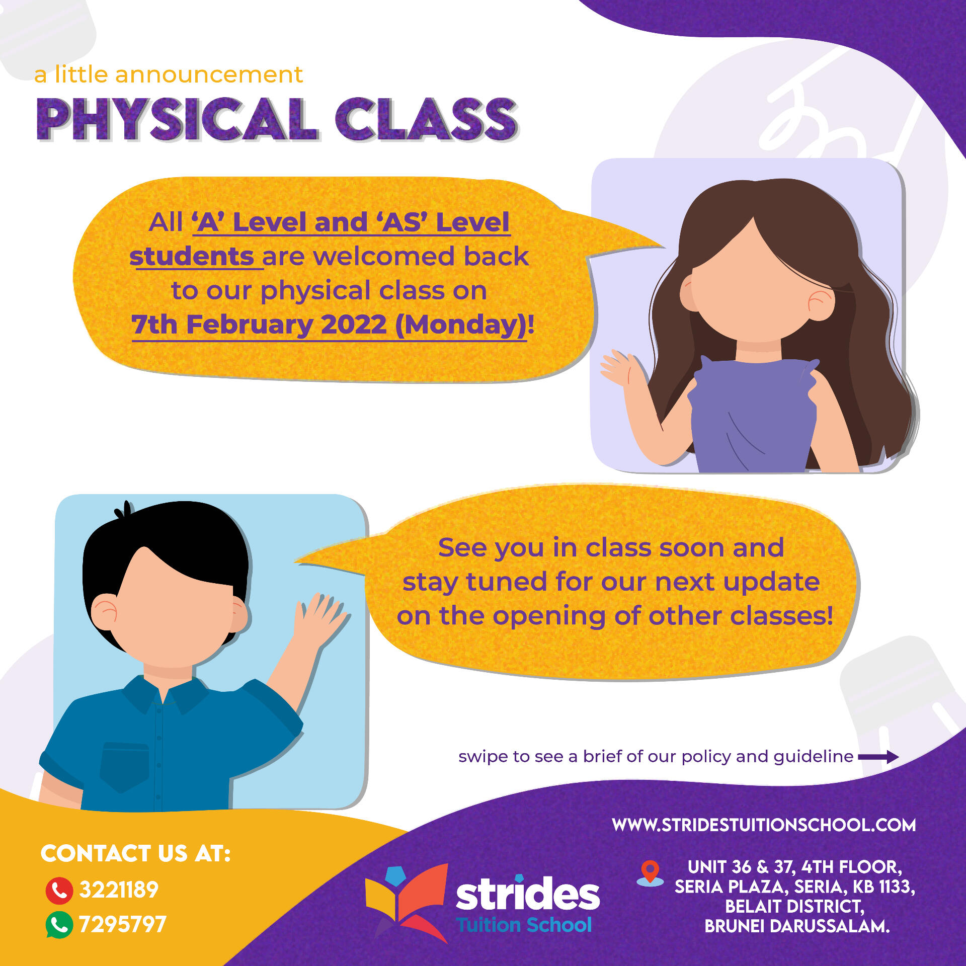 📢We’re super excited to announce that we’re re-opening physical class! Starting on 9th May 2022 with Year 9 to Year 13 students. 16th May 2022 for Year 7 and Year 8 students and lastly 23rd May 2022 for Year 4 up to Year 6 students! See you in class soon! 😆