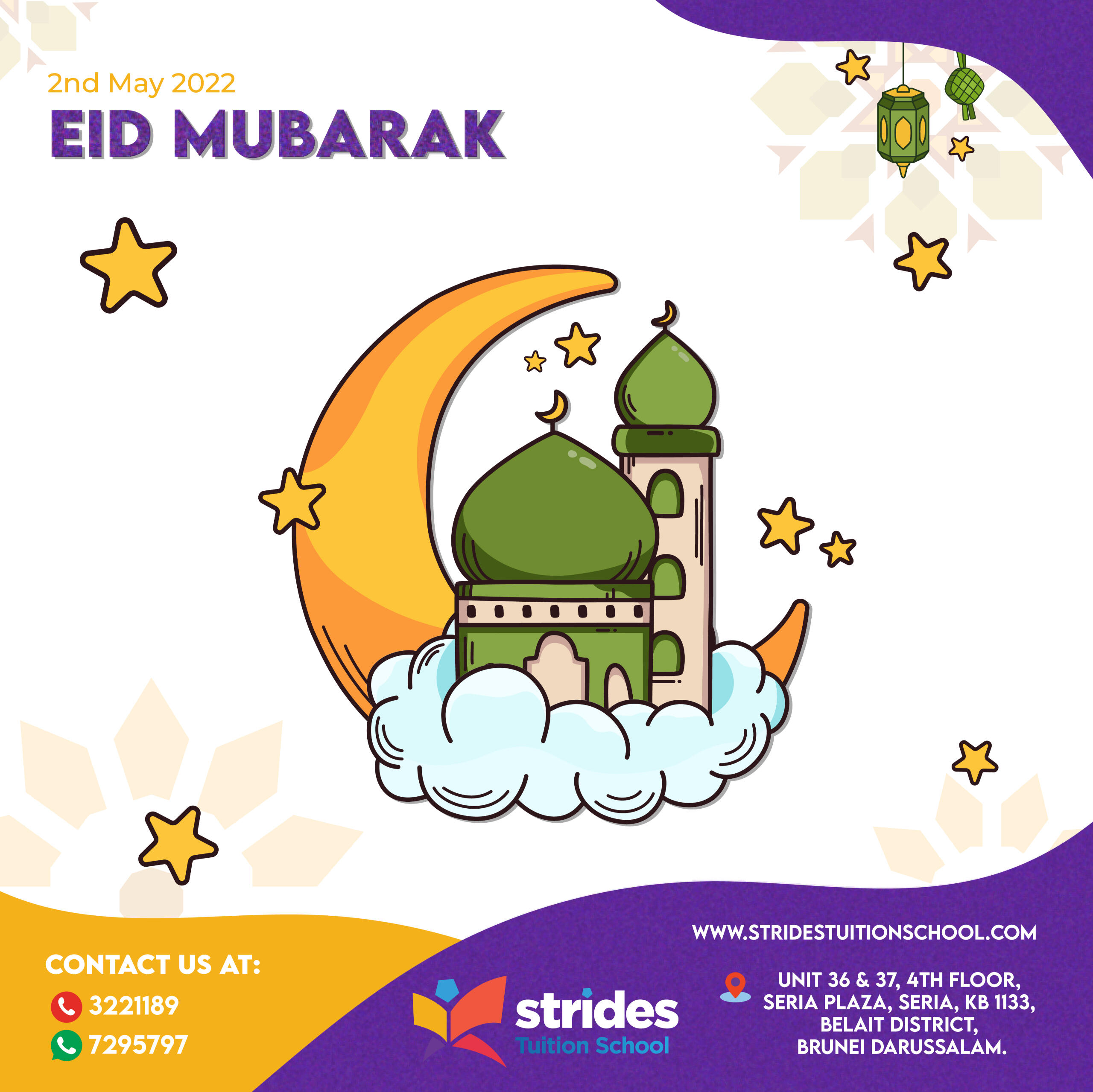 Happy Eid Mubarak! 🌛 Strides Tuition School will be closed for 3 days (2nd May up to 5th May 2022). We’ll be back on 6th May 2022 (Friday). Happy holidays and stay safe! We’ll see you guys soon! 😊